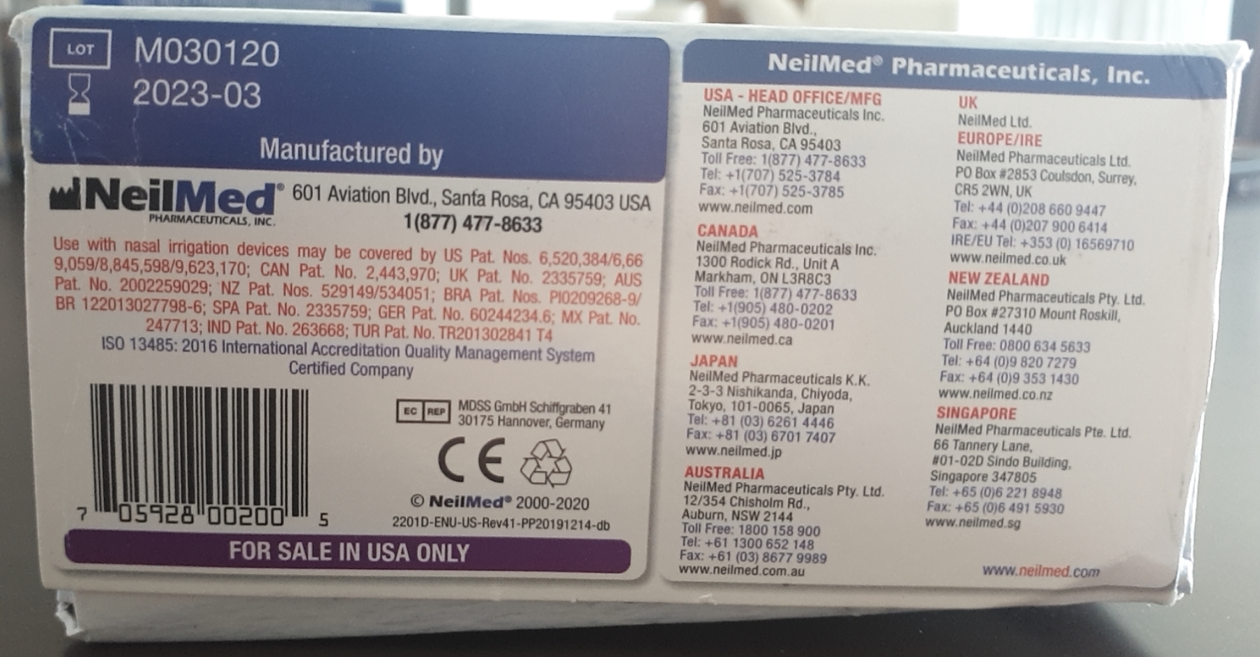 BỘ NGUYÊN MUỐI GÓI TINH KHIẾT RỬA MŨI NEILMED SINUS RINSE - HỘP 250 GÓI
