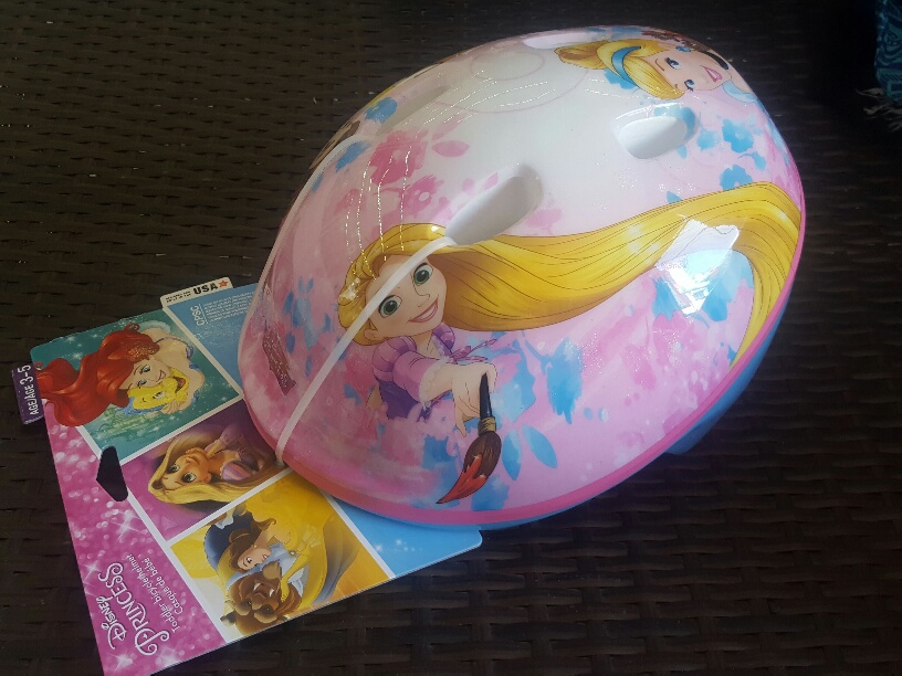 Protect your princess and help her learn to ride like a royal with this Disney Princess themed bike helmet. Features a glitter design she\'s sure to love! The True Fit easy 1-step adjustment quickly and easily sizes to the perfect fit. The helmet also includes high impact reflectors for added visibility and Pinch Guard for pain free buckling. Complies with the U.S. CPSC Safety Standard for Bicycle Helmets for Persons Age 1 and Older (Extended Head Coverage).