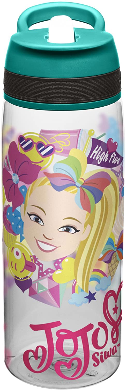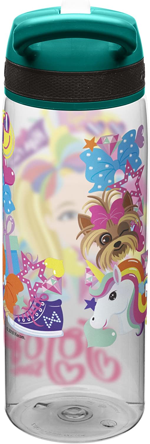Zak Designs Jojo Siwa Kids Water Bottle with Straw and Built in Carrying Loop, Durable Water Bottle Has Wide Mouth and Break Resistant Design is Perfect for Kids Girls (25oz, Green, Plastic, BPA Free)