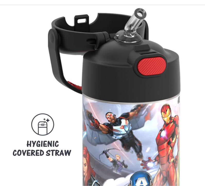 BÌNH NƯỚC GIỮ NHIỆT SIÊU ANH HÙNG THERMOS FUNTAINER 12 OZ 355ML Stainless Steel Vacuum Insulated Kids Straw Bottle, Avengers
