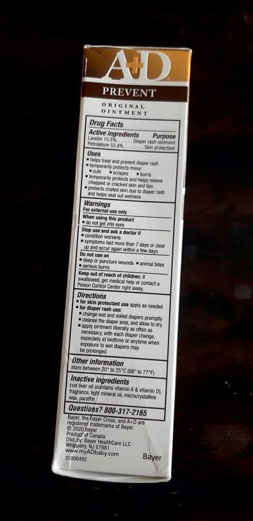 * Bạn nên tránh sử dụng các loại thuốc khác trên vùng đang điều trị bằng a+d ointment. Hoạt động của các thuốc điều trị khác có thể khiến tác dụng của a+d ointment thuyên giảm.